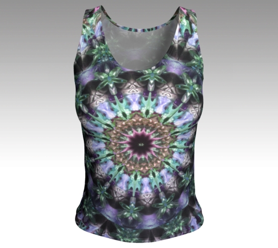This Brain Jewell Mystique Tank Top wicks moisture quickly for athletic use. It has a silky soft texture for an underwear layer or top for an outfit. Made from one of kind, original fabric designs. They bring healing, energy, balance, as you wear them. Eco-friendly, super soft 92% poly and 8% spandex.